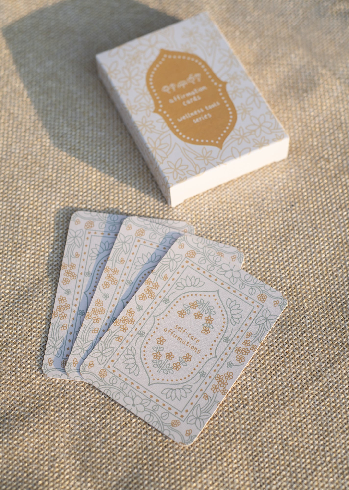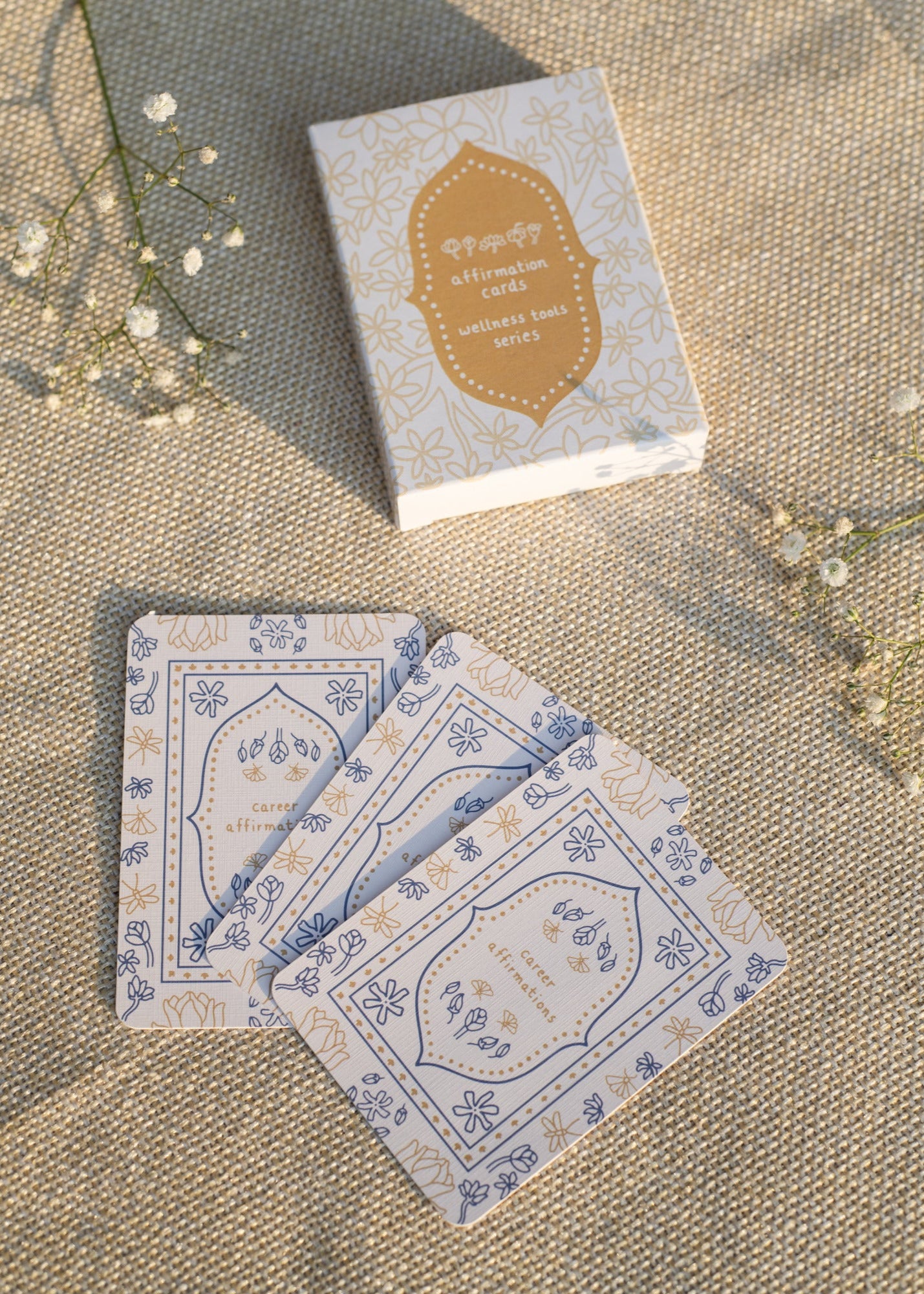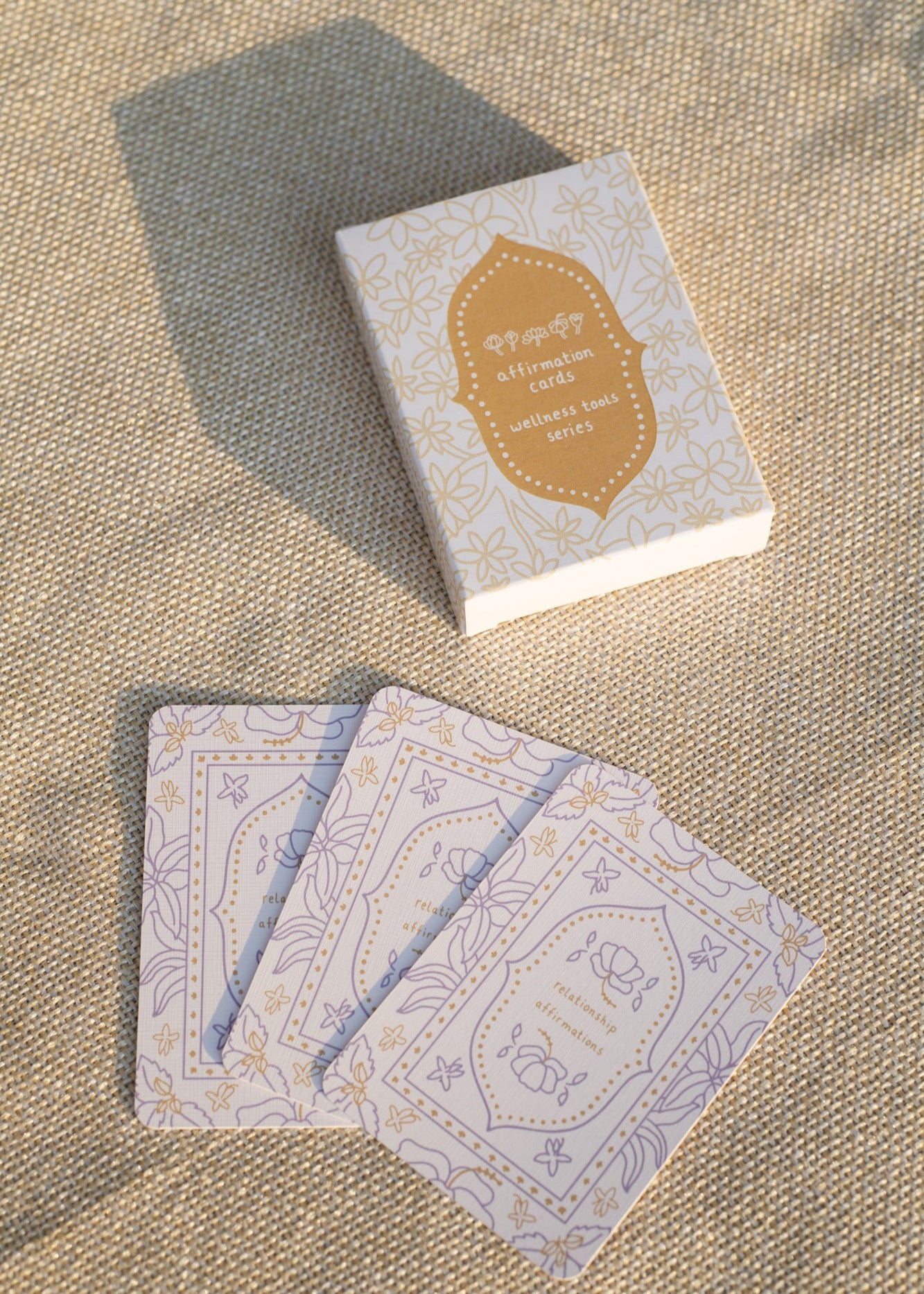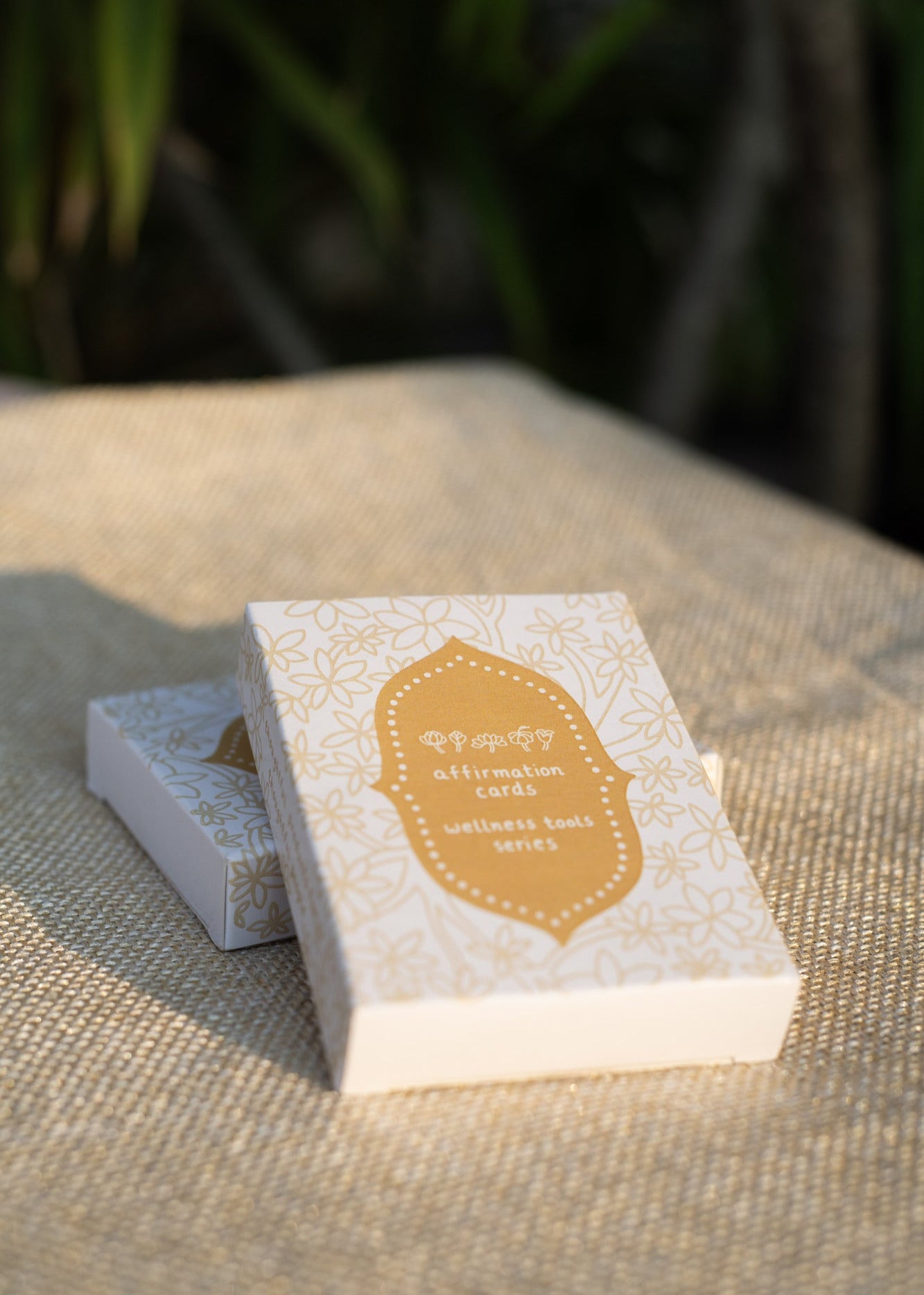 A box of 35 'Affirmation Cards' across 5 spheres of your life, this tool is a part of our ‘Wellness Tools Series’.