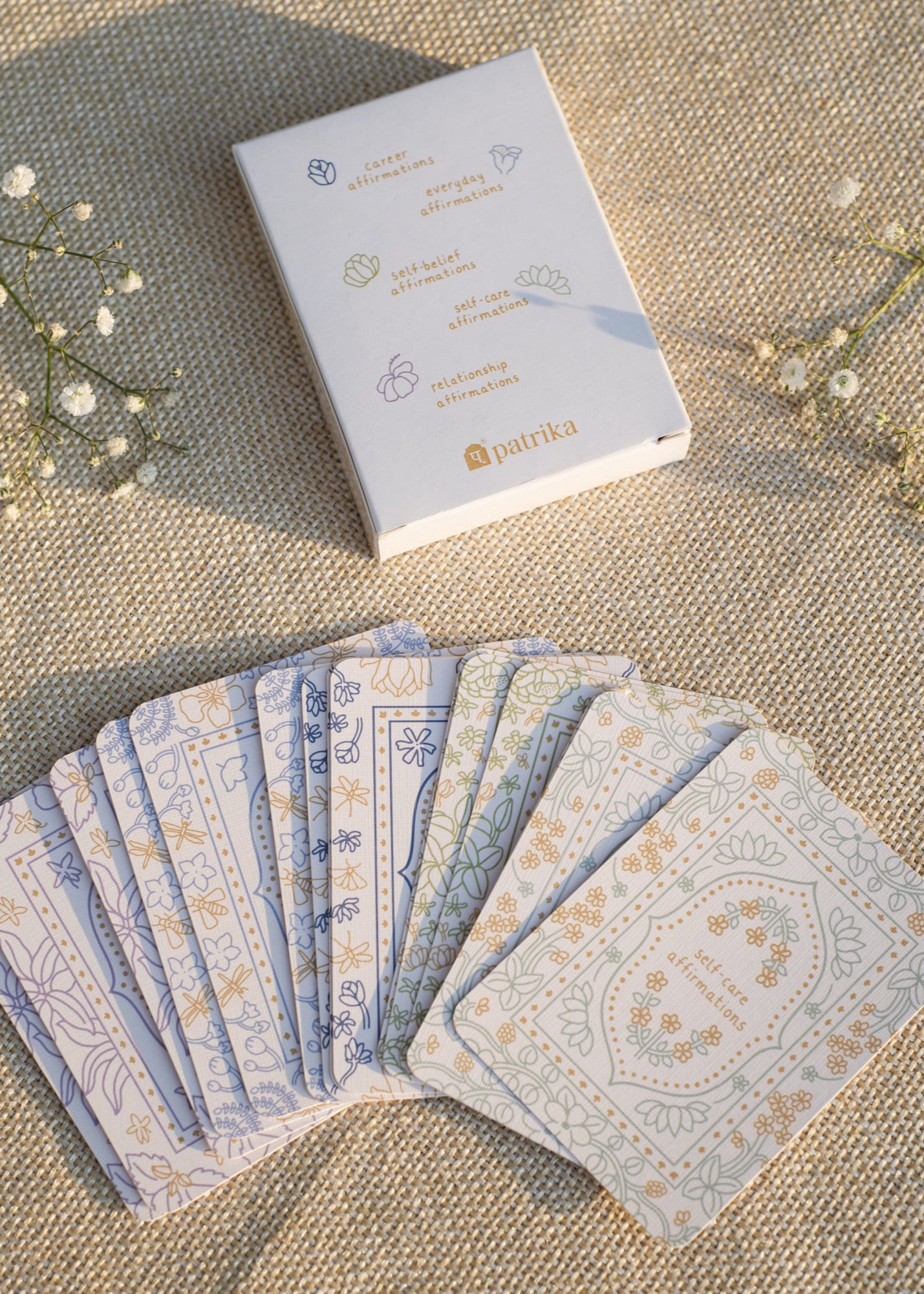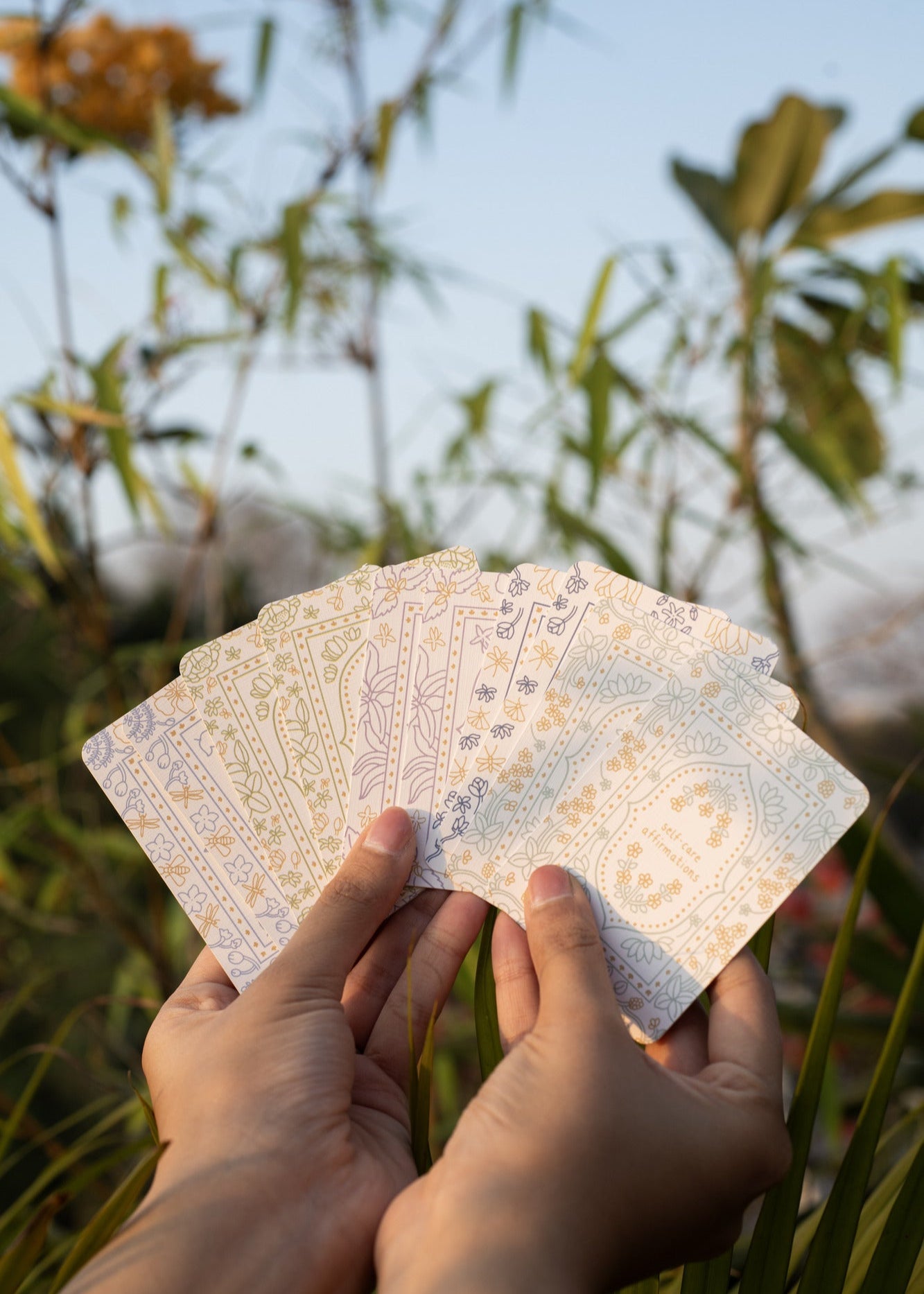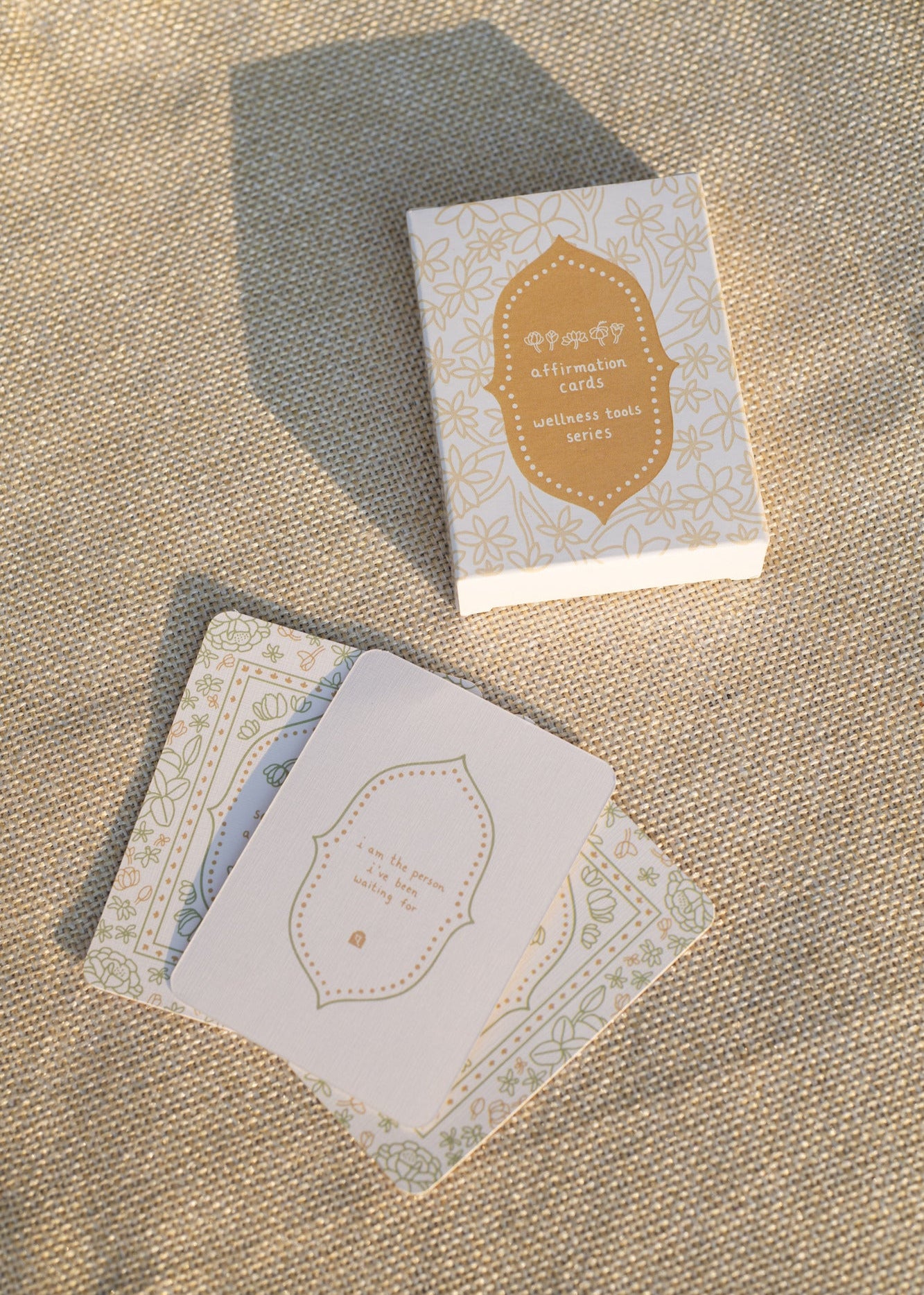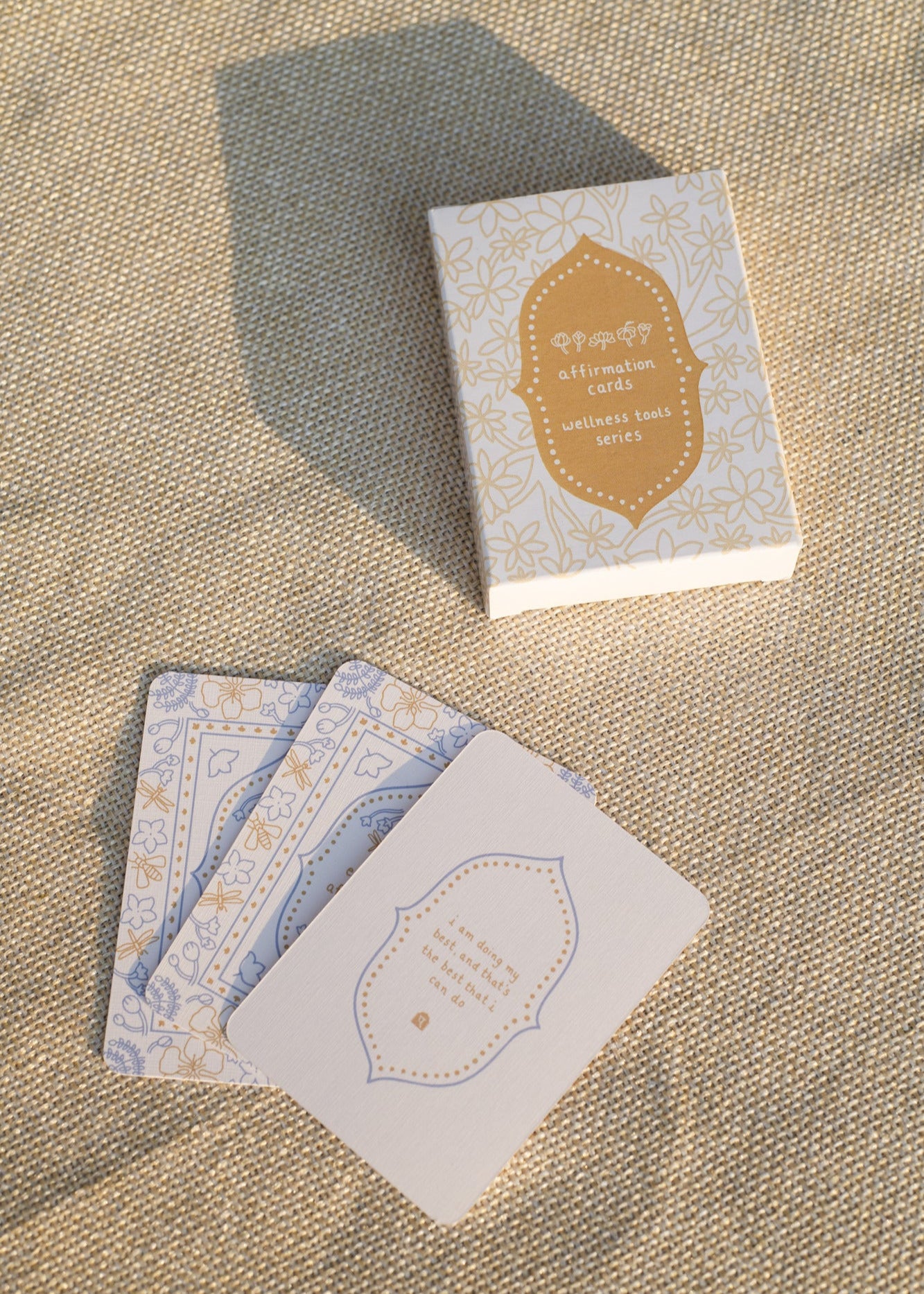 A box of 35 'Affirmation Cards' across 5 spheres of your life, this tool is a part of our ‘Wellness Tools Series’.