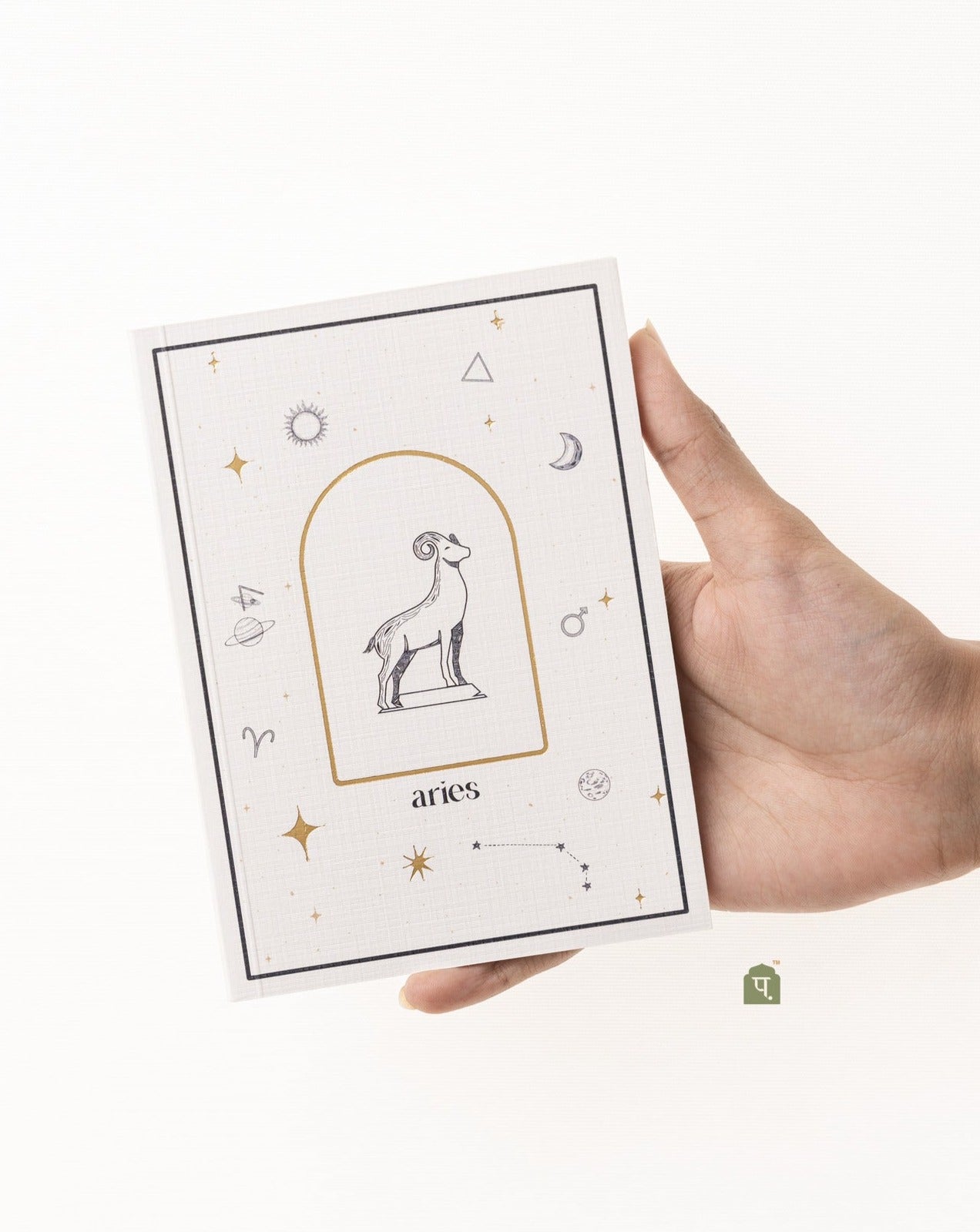 An elegant addition to any stationery/ sun sign lover's collection, this pocket zodiac-themed notebook is a part of our ‘Zodiac Series’. The cover is illustrated with symbols & elements that are tied to the Aries sign.