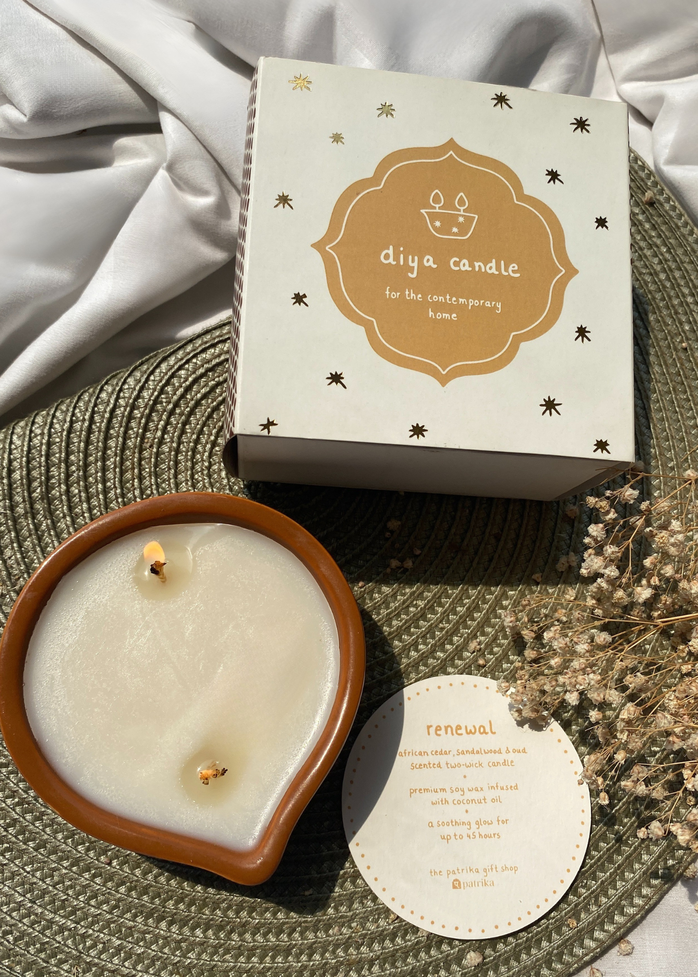 Renewal: African Cedar, Sandalwood & Oud Diya Candle