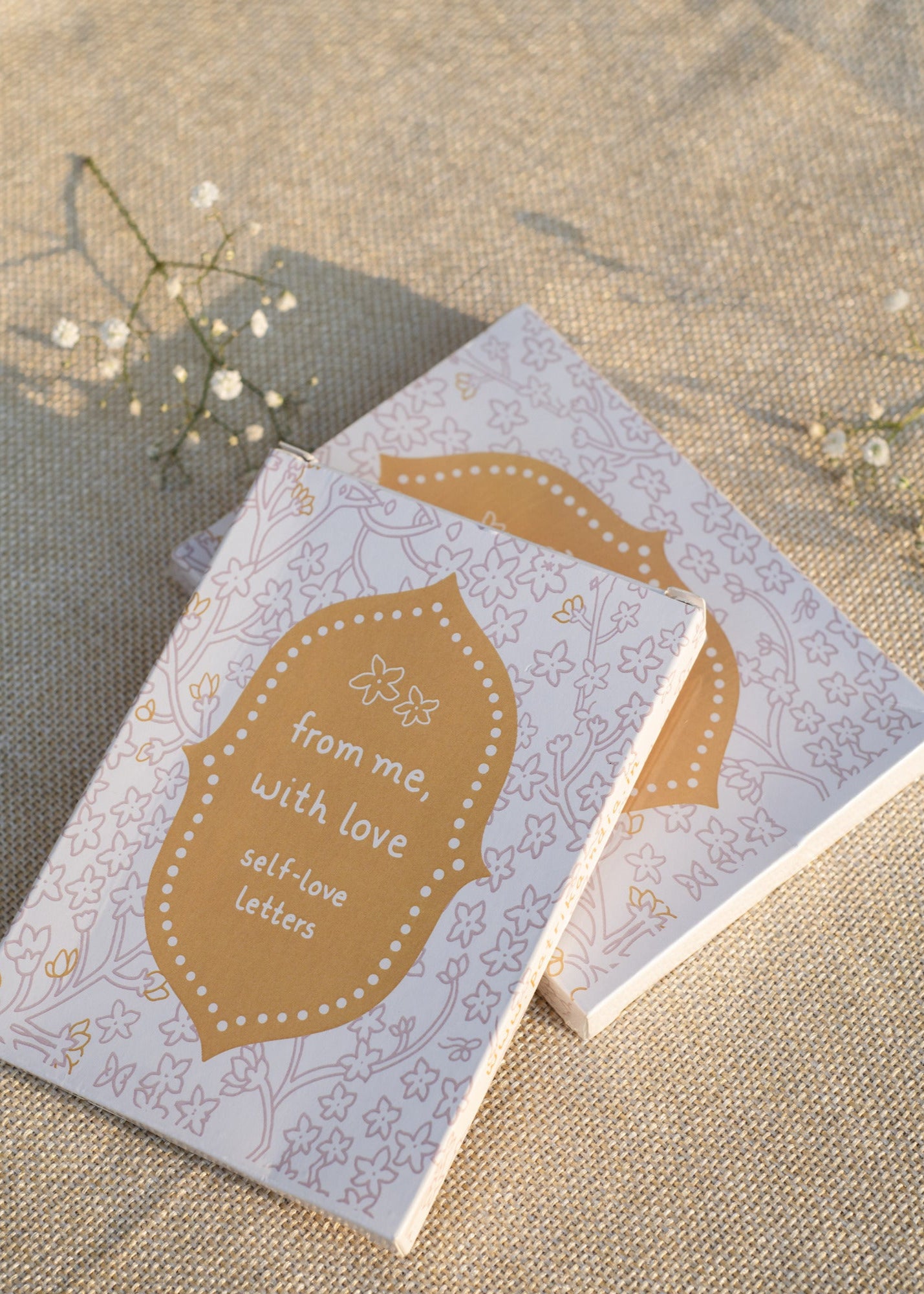 A box of 25 'Self-Love Letters' to write to yourself, 'From Me, With Love', is a part of our ‘Wellness Tools Series’.