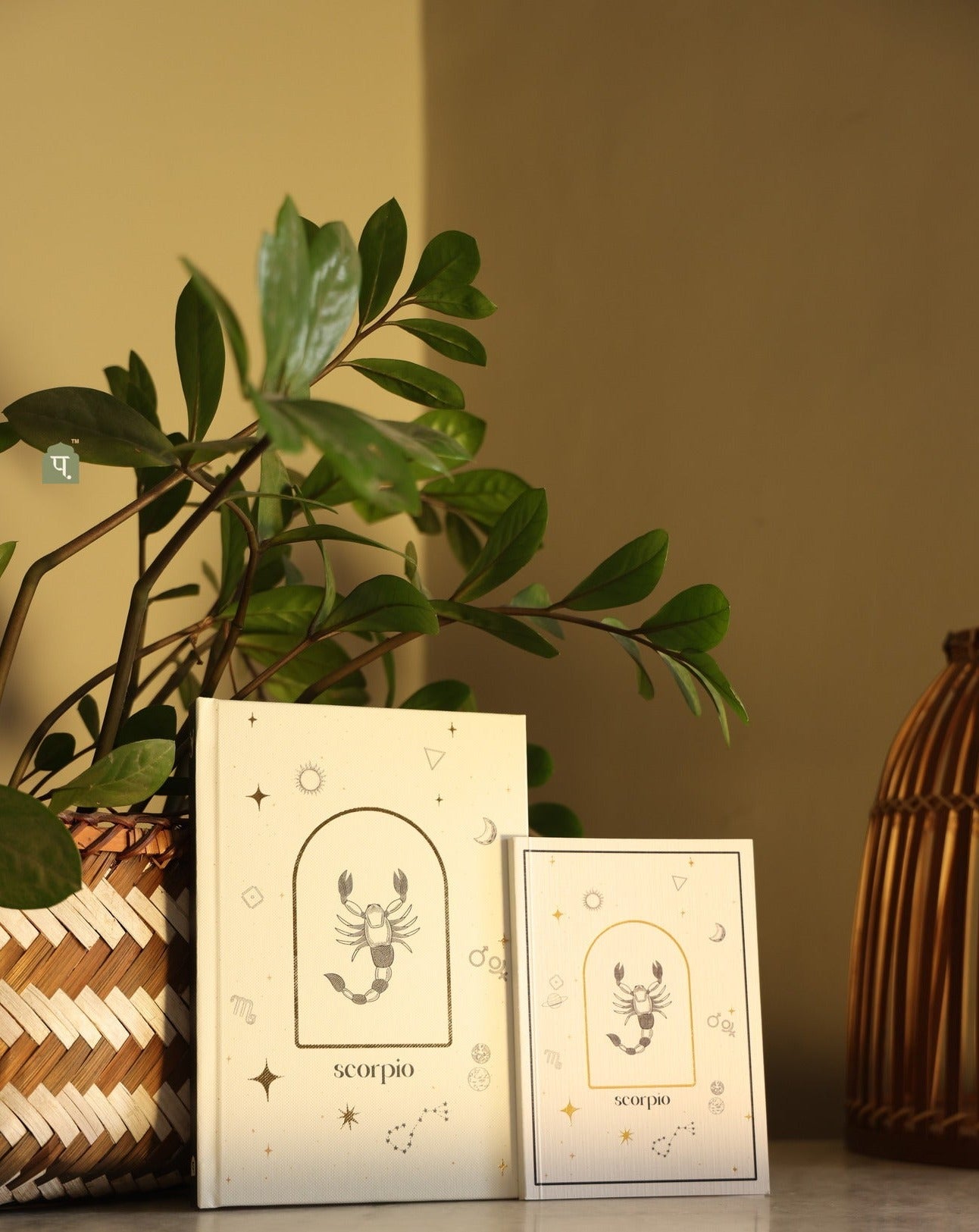 It comes in a specially curated box with zodiac stamps on it. You can use this patrika for personal reflection, goal-setting, note-taking, exploring a creative pursuit, preserving family recipes, work/study notes and planning, among other things.
