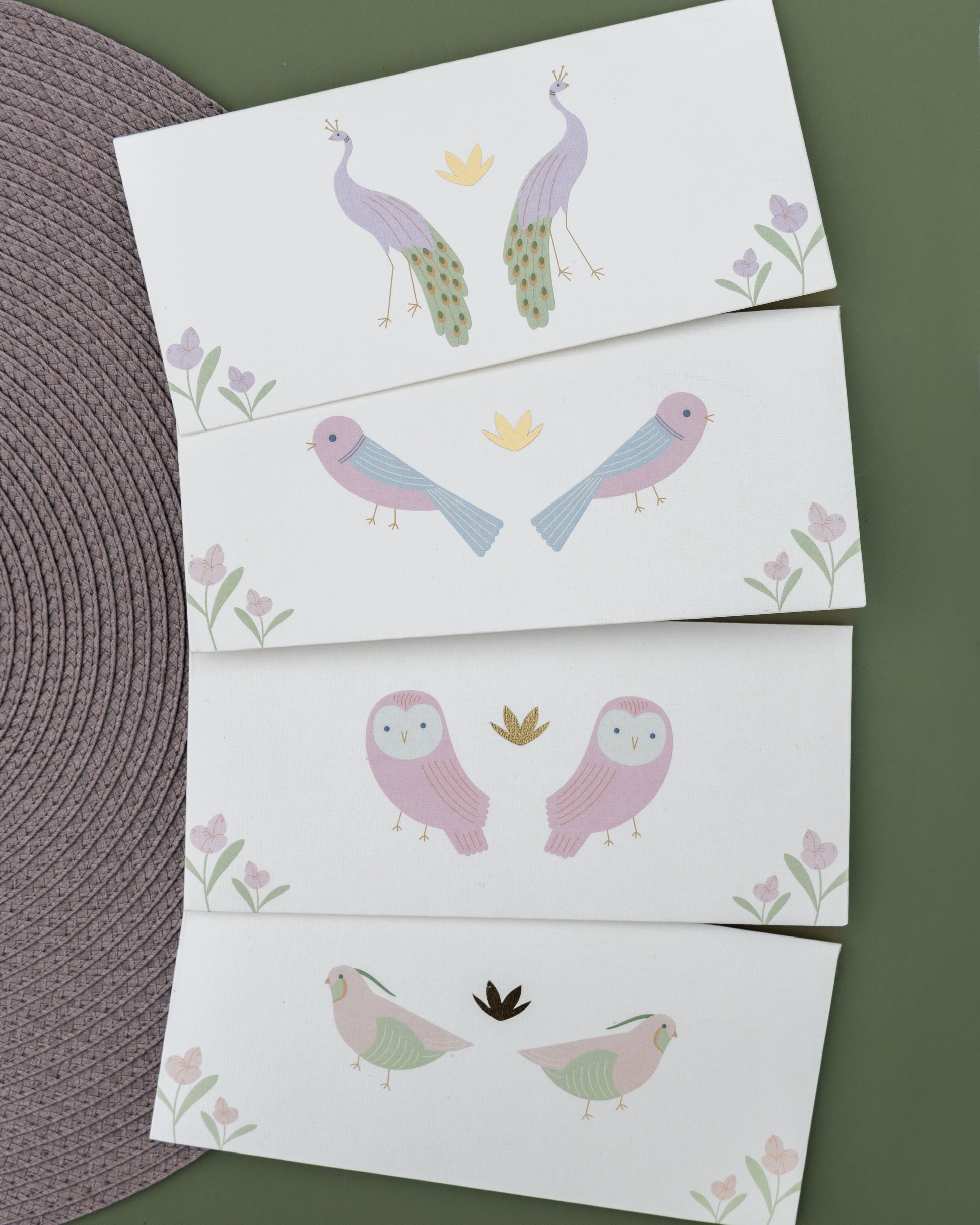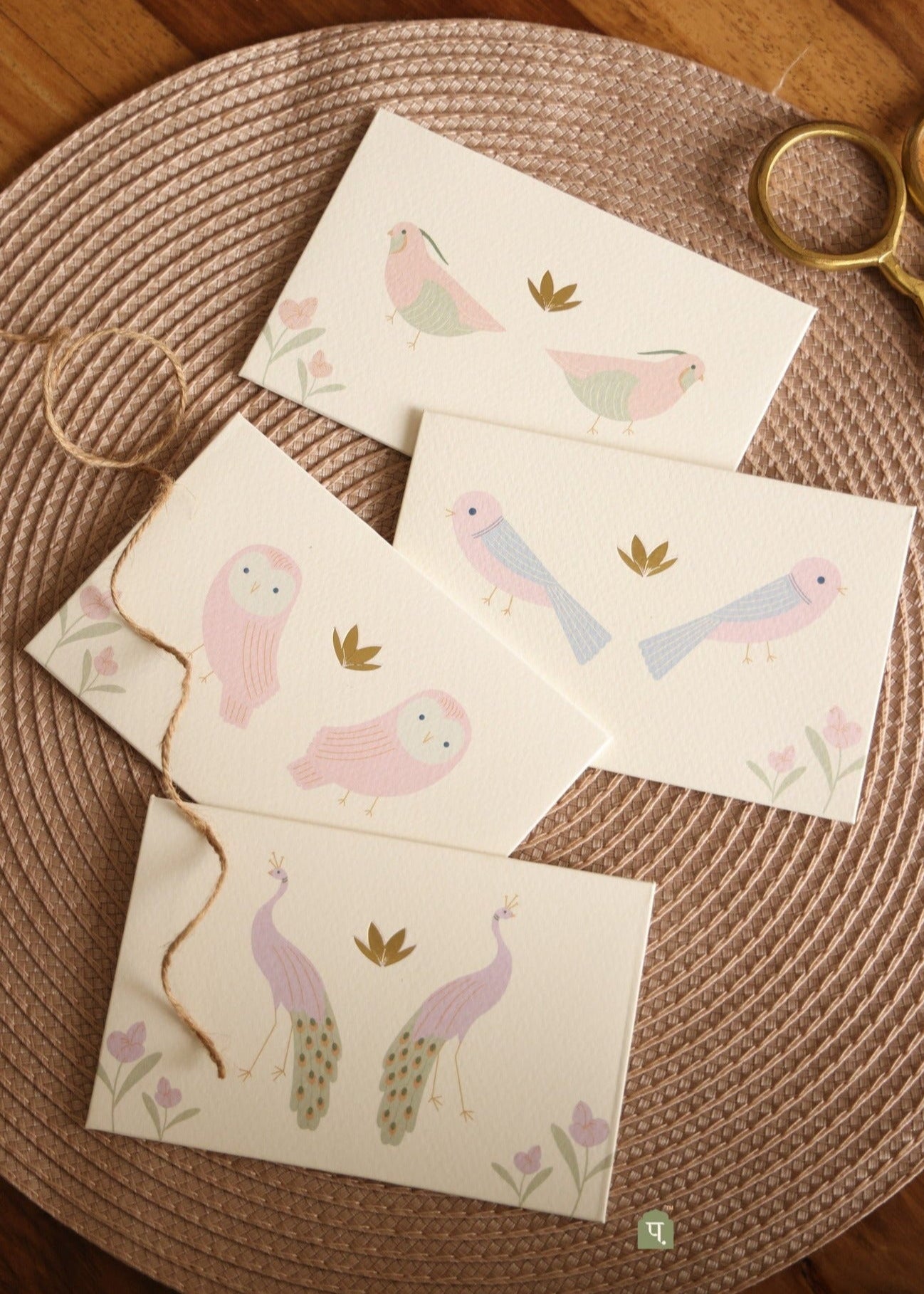 They highlight the endangered birds of India, with illustrations of Himalayan Quails, Finn’s Weaver Birds, Forest Owlets and Green Peafowls. Calming to the eyes, the pastel tones add a hint of delicate sophistication while mirroring the tenderness of relationships.