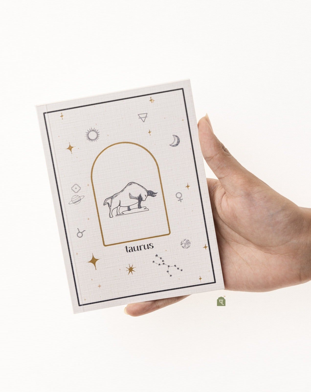 An elegant addition to any stationery/ sun sign lover's collection, this pocket zodiac-themed notebook is a part of our ‘Zodiac Series’. The cover is illustrated with symbols & elements that are tied to the Taurus sign.